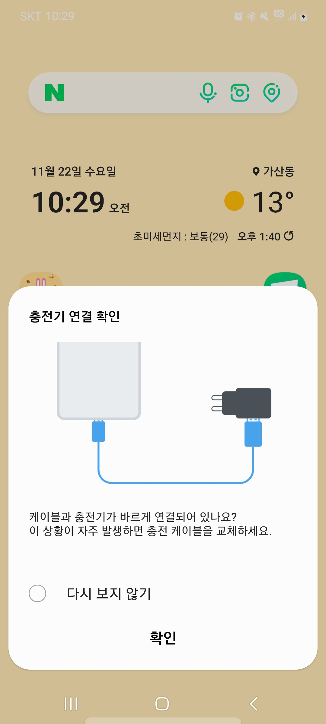 스마트폰에서도 두 장치 간에 연결이 올바르지 않으면 다음과 같이 사용자에게 이상이 있음을 알려주고 있습니다.
