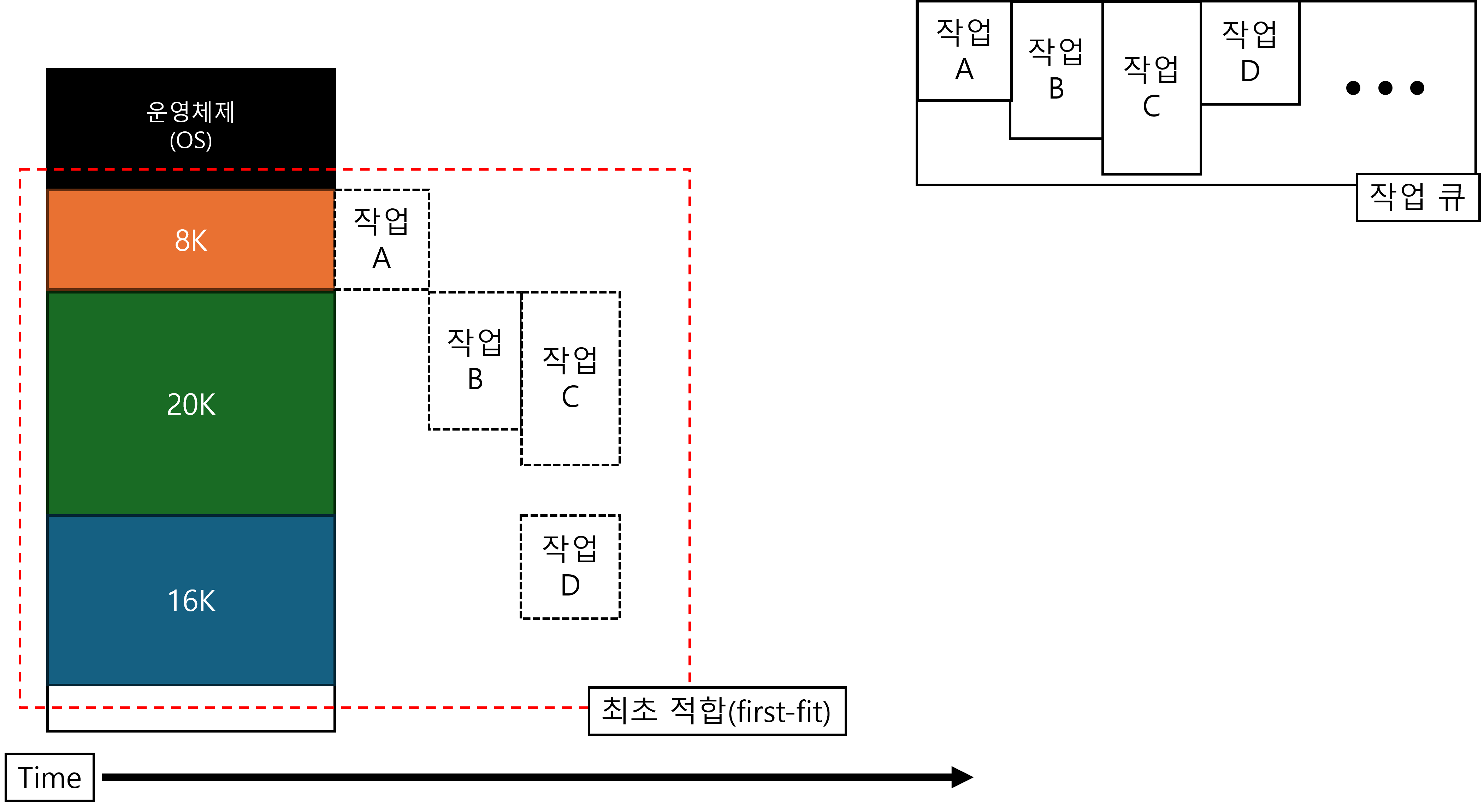 주 기억장치의 사용 가능한 공간 중에서 그 작업을 수용할 수 있는 첫번째 공간에 빠르게 배치하는 방법입니다.