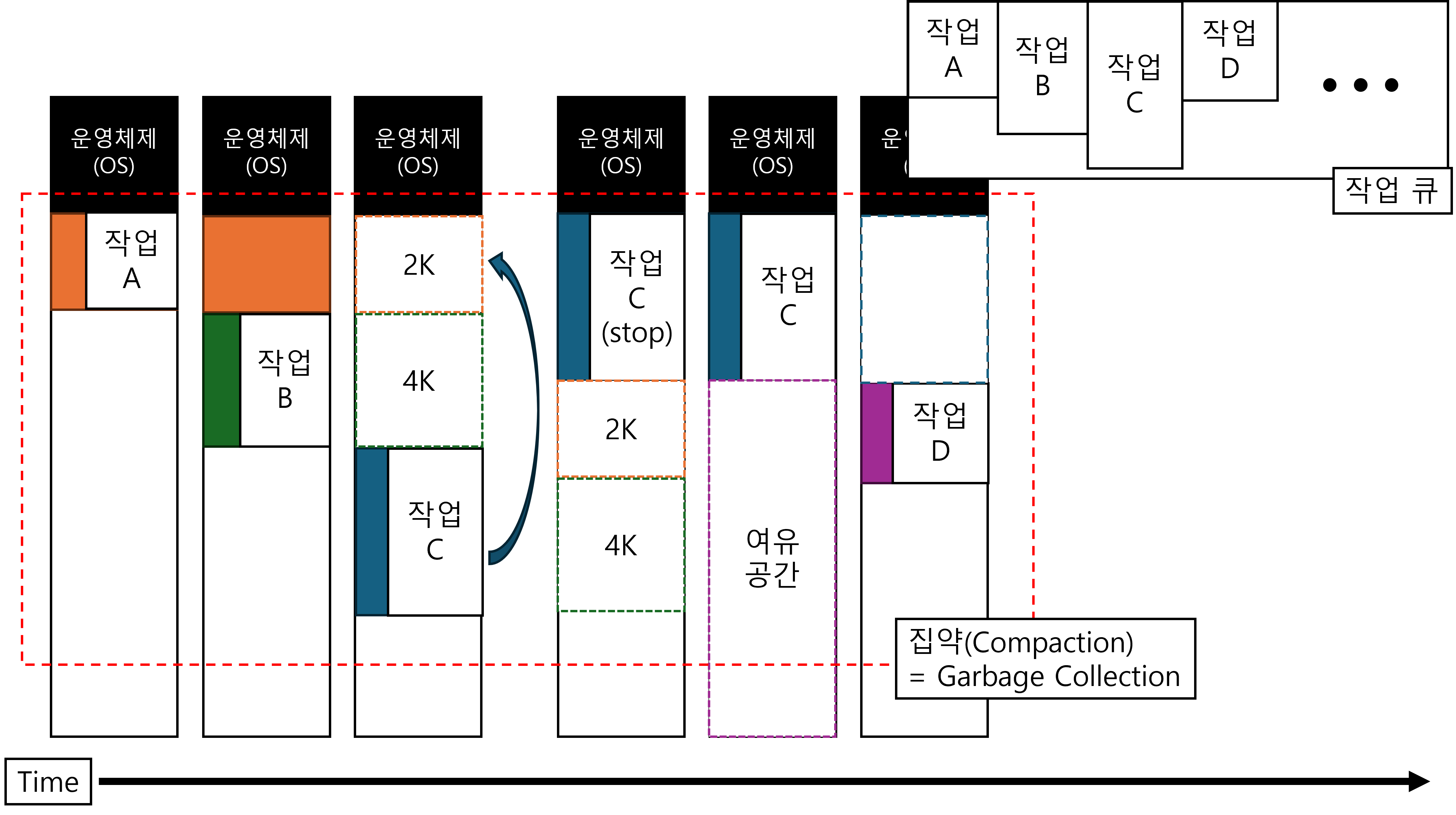 따라서, 이러한 문제를 해결하기 위해 사용중인 작업을 연속적인 순서를 갖도록 한 쪽으로 합쳐서 커다란 여유 공간을 확보할 수 있습니다.