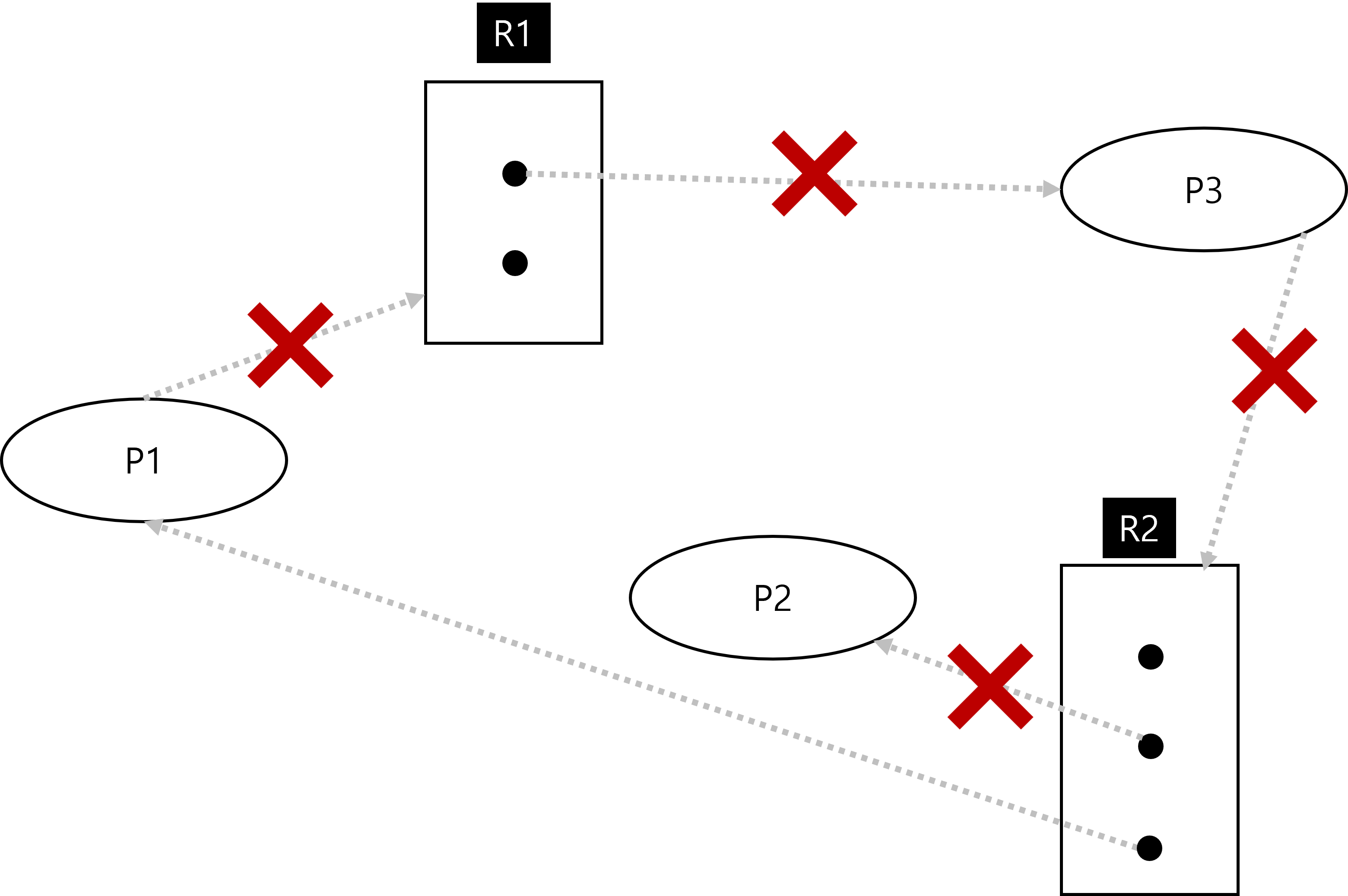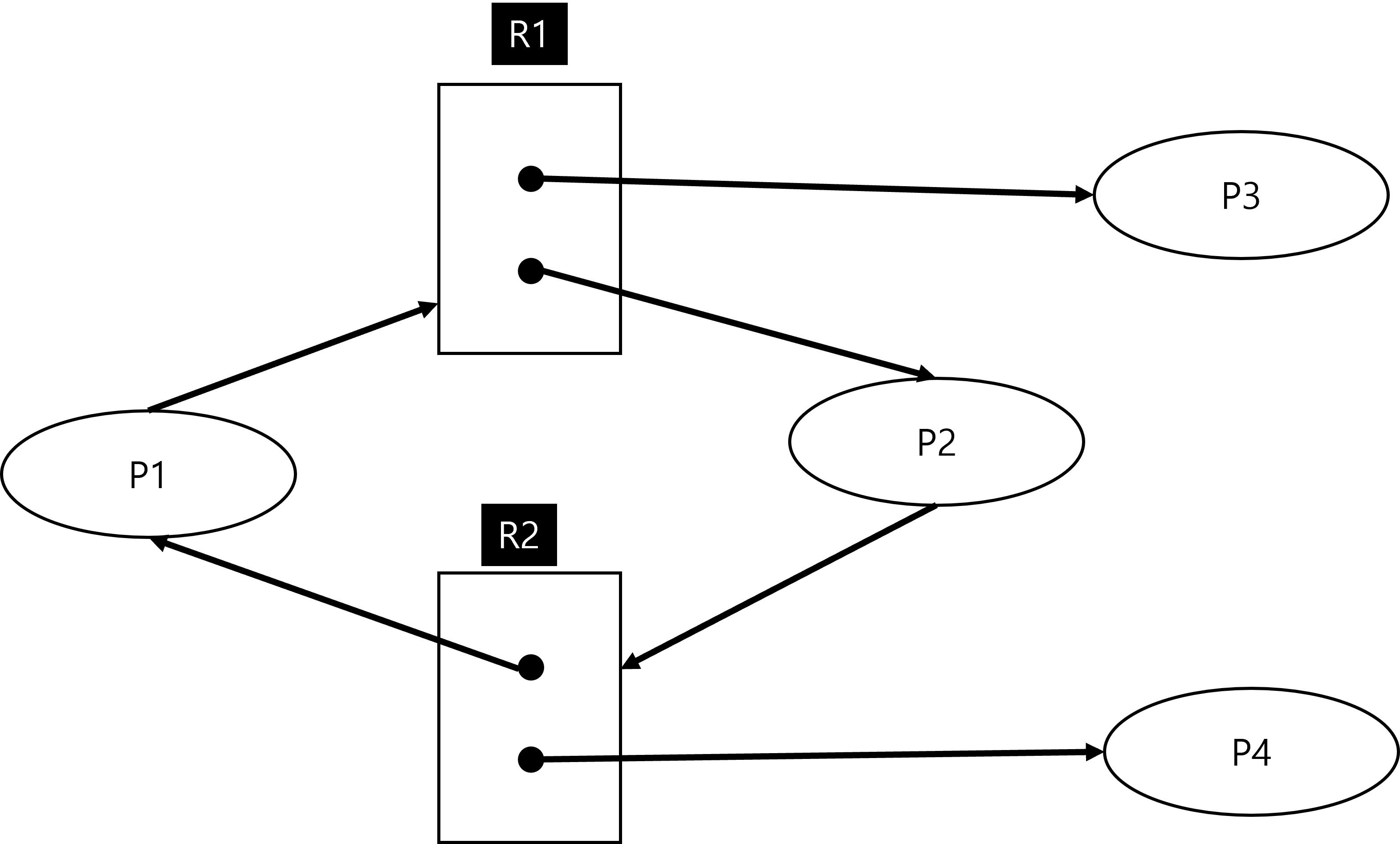 이러한 자원 할당 그래프는 아래와 같이 표현할 수 있습니다.