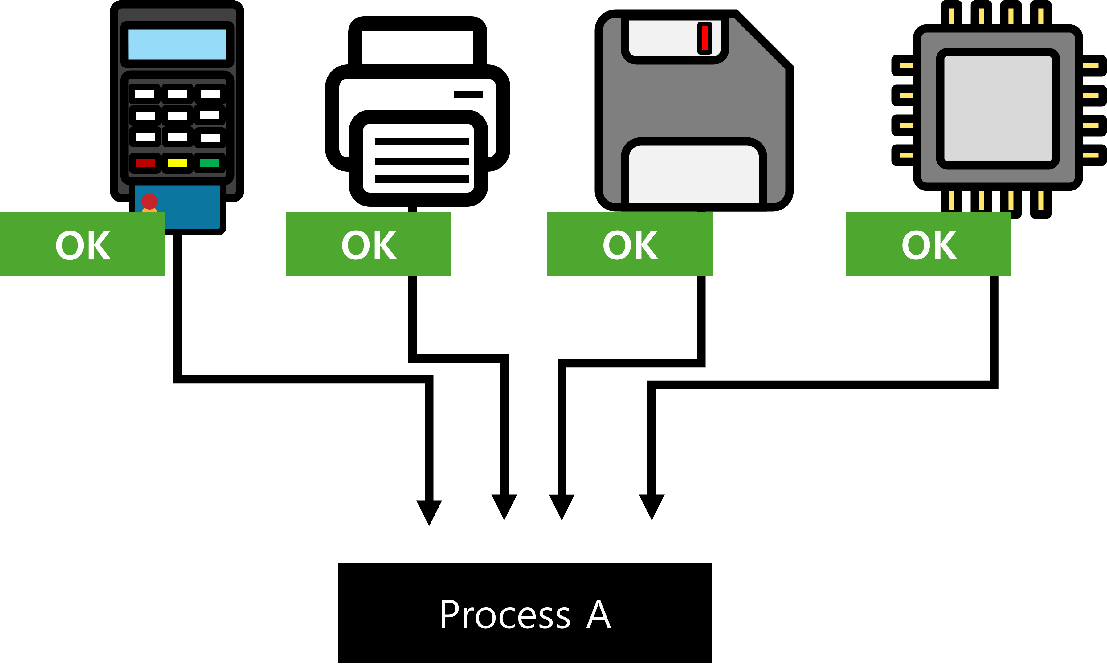 위 사례에서는 만약 어떤 프로세스가 현재 디스크 구동기를 사용한 후에, 프린터를 요청하는 것은 가능하지만 카드 판독기는 요청할 수 없다는 것을 의미합니다.