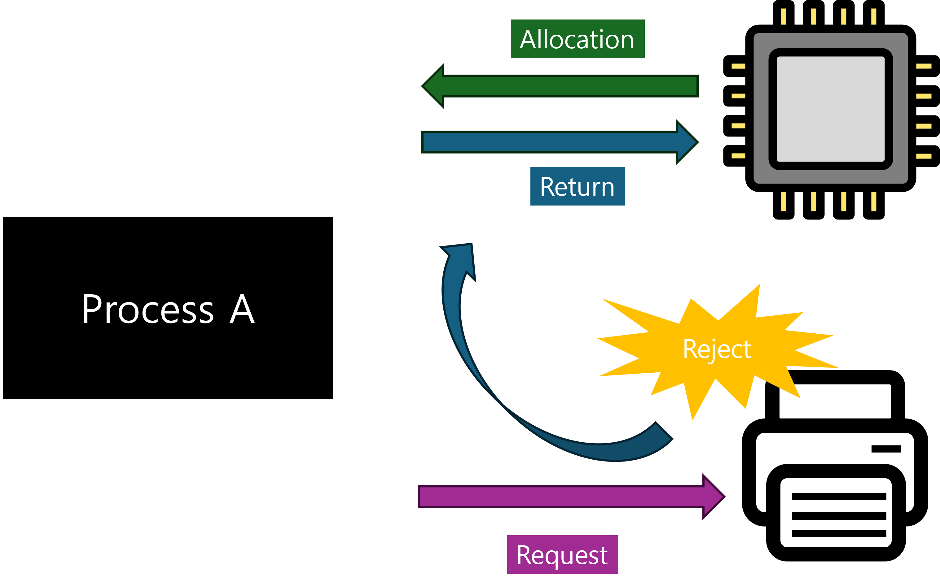 - 은행의 고객, 즉 운영체제는 각 프로세스에게 유한한 시간 내에 자원을 반환할 것을 요구하지만, 이러한 ‘약속’만으로는 강제성이 부족할 수 있습니다.