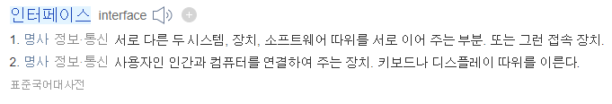 인터페이스 : https://ko.dict.naver.com/#/entry/koko/780e996aabb748788158079de5b19d4c