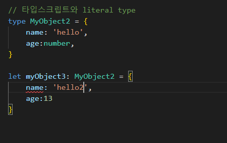 let myObject4: newMyObject = { name: "hey", age: 13 };