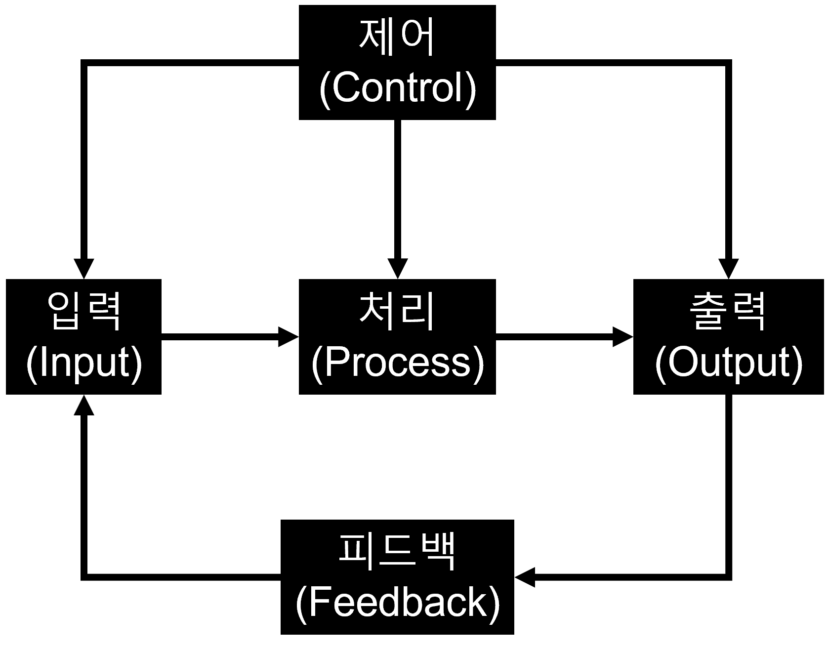 ① 입력 ② 처리 ③ 출력 ④ 제어 ⑤ 피드백