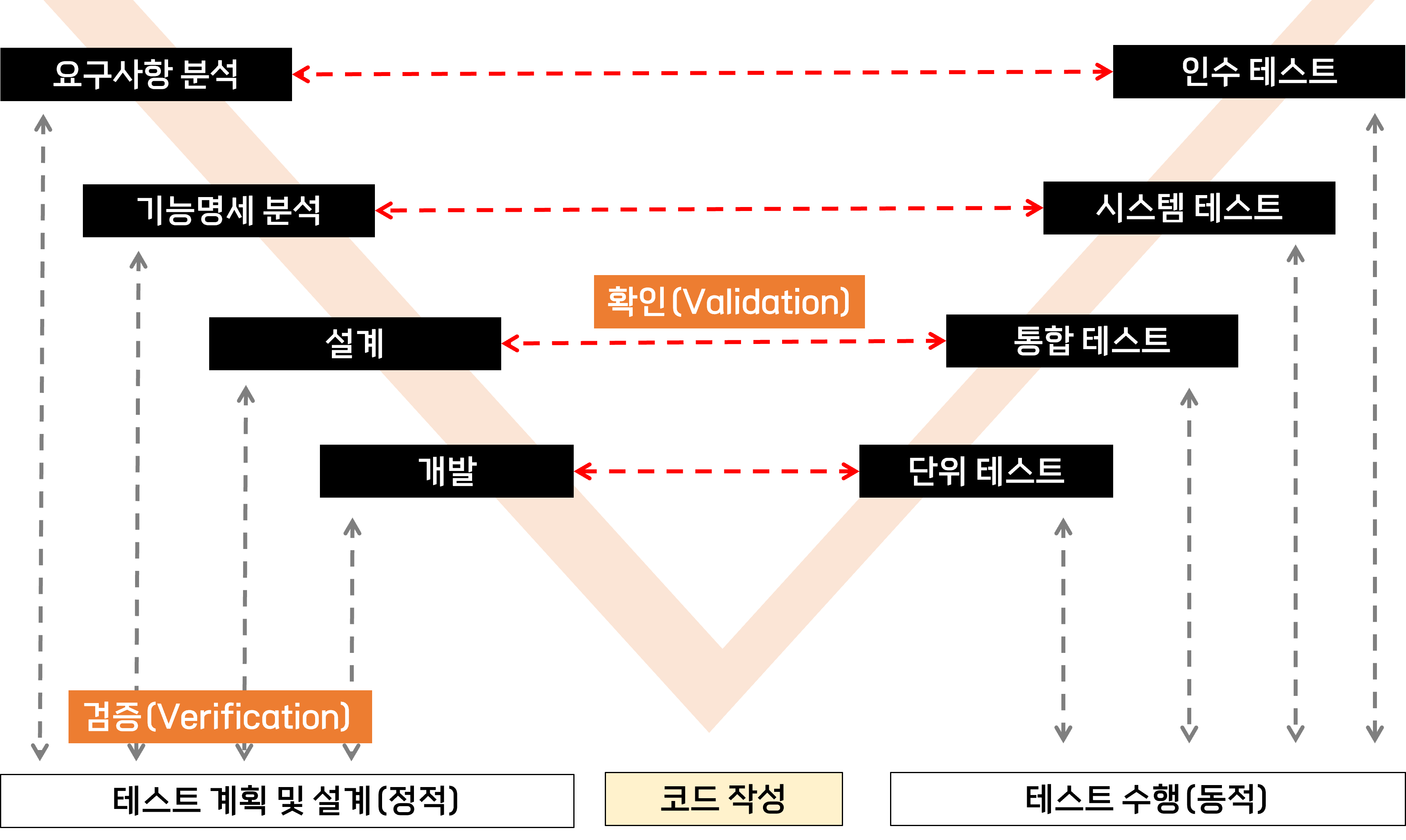 ① 폭포수 모형에 시스템 검증과 테스트 작업을 강조한 모델이다.