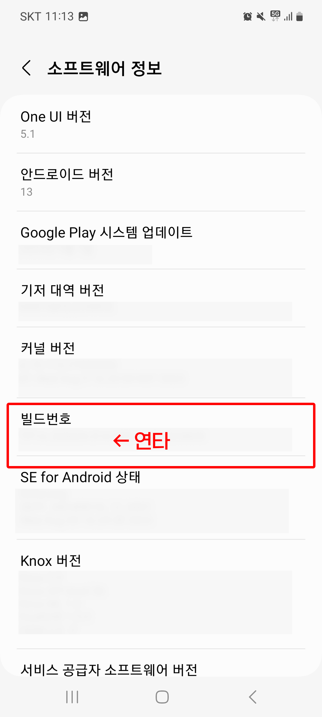 보통 한국인이 많이 사용하는 갤럭시 스마트폰을 기준으로 하면 설정 > 휴대전화 정보 > 소프트웨어 정보 에서 빌드 번호를 찾을 수 있다.