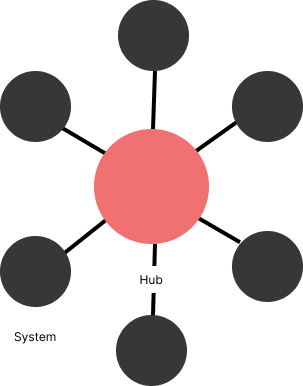 | 허브 앤 스포크(Hub & Spoke) | 단일한 접점 허브 시스템 통하여 데이터를 전송하는 중앙 집중식 방식 허브 장애 시 전재 장애 발생 |